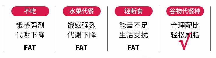 根据你个人想减脂或者保持身材的需求,用谷物棒来代替一餐或者多餐,再配合一点简单的运动,大可不必受节食的罪,你还能很快看到效果。