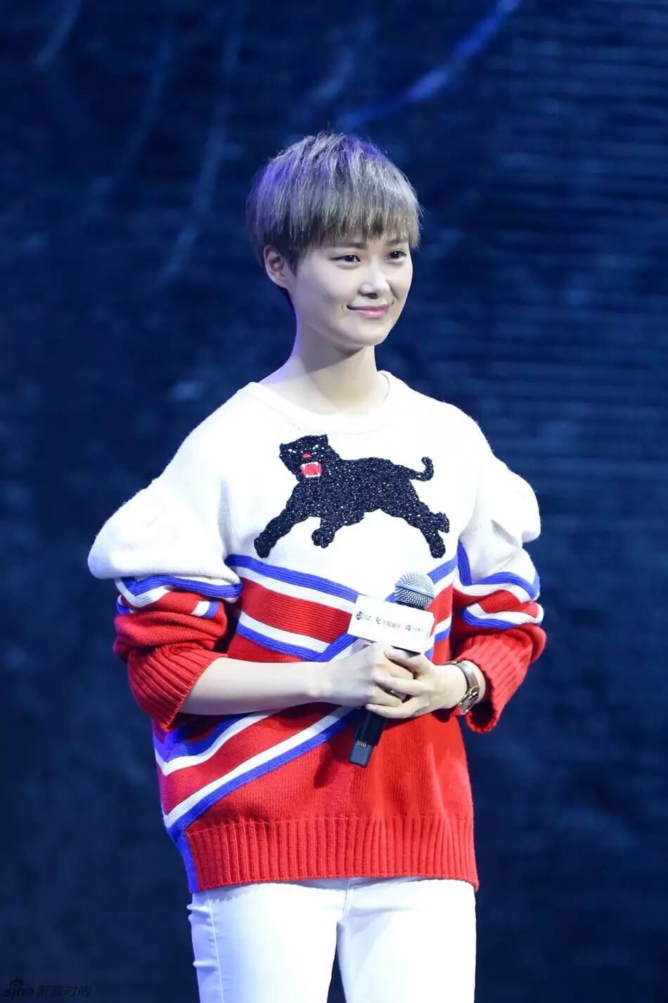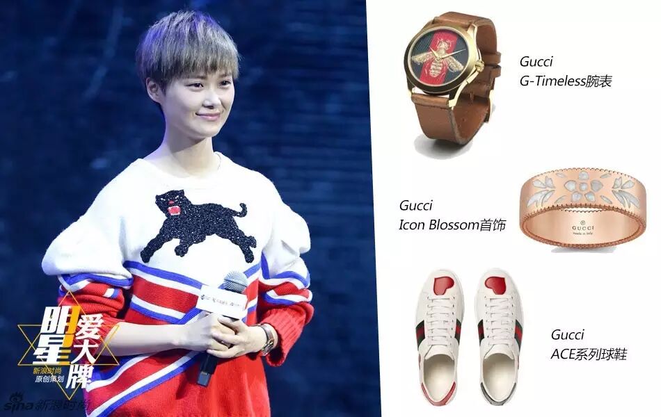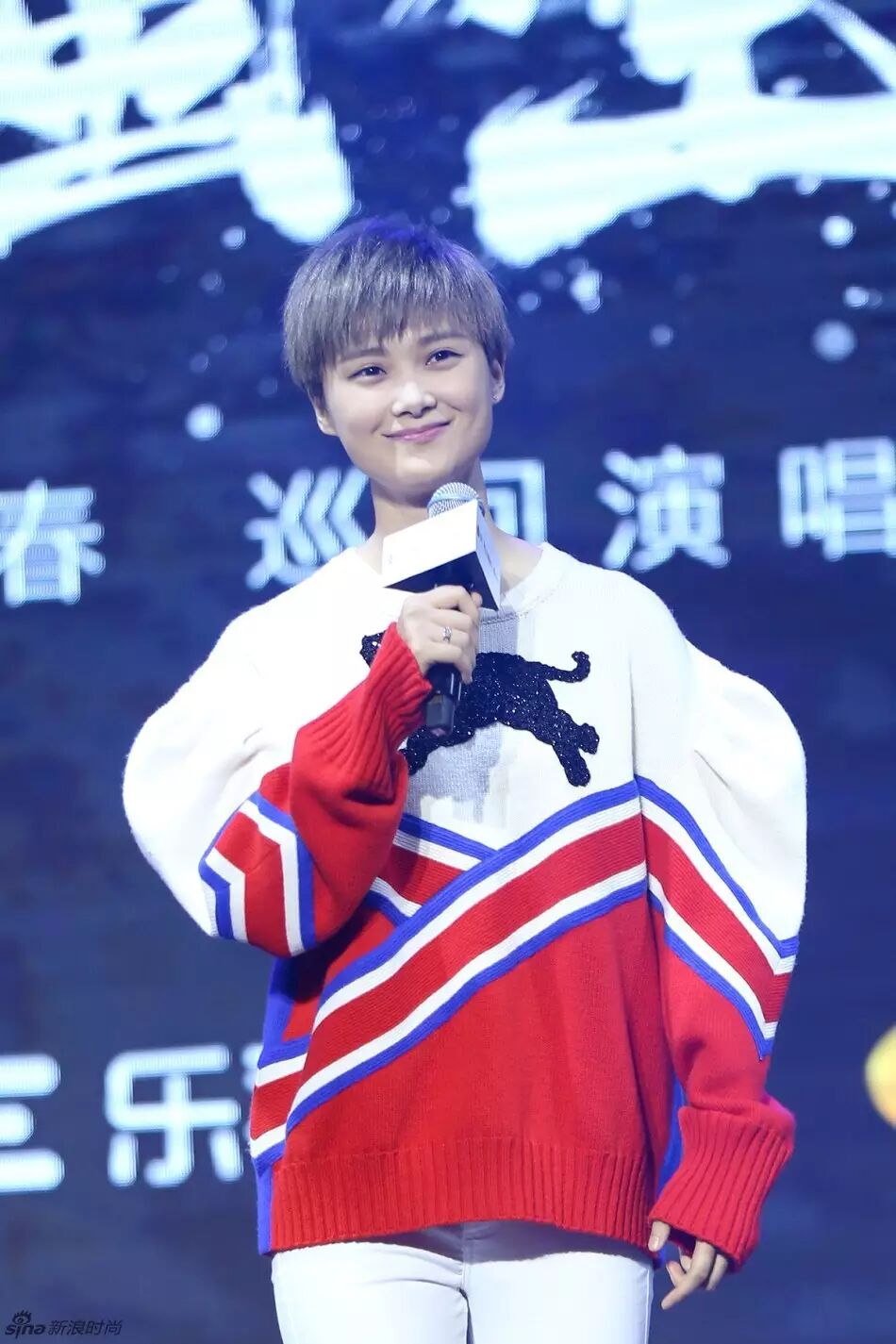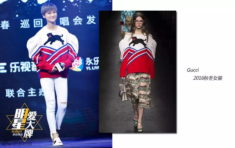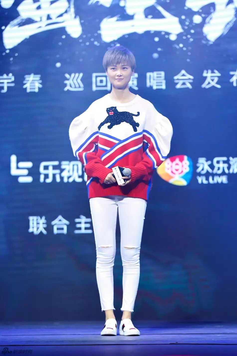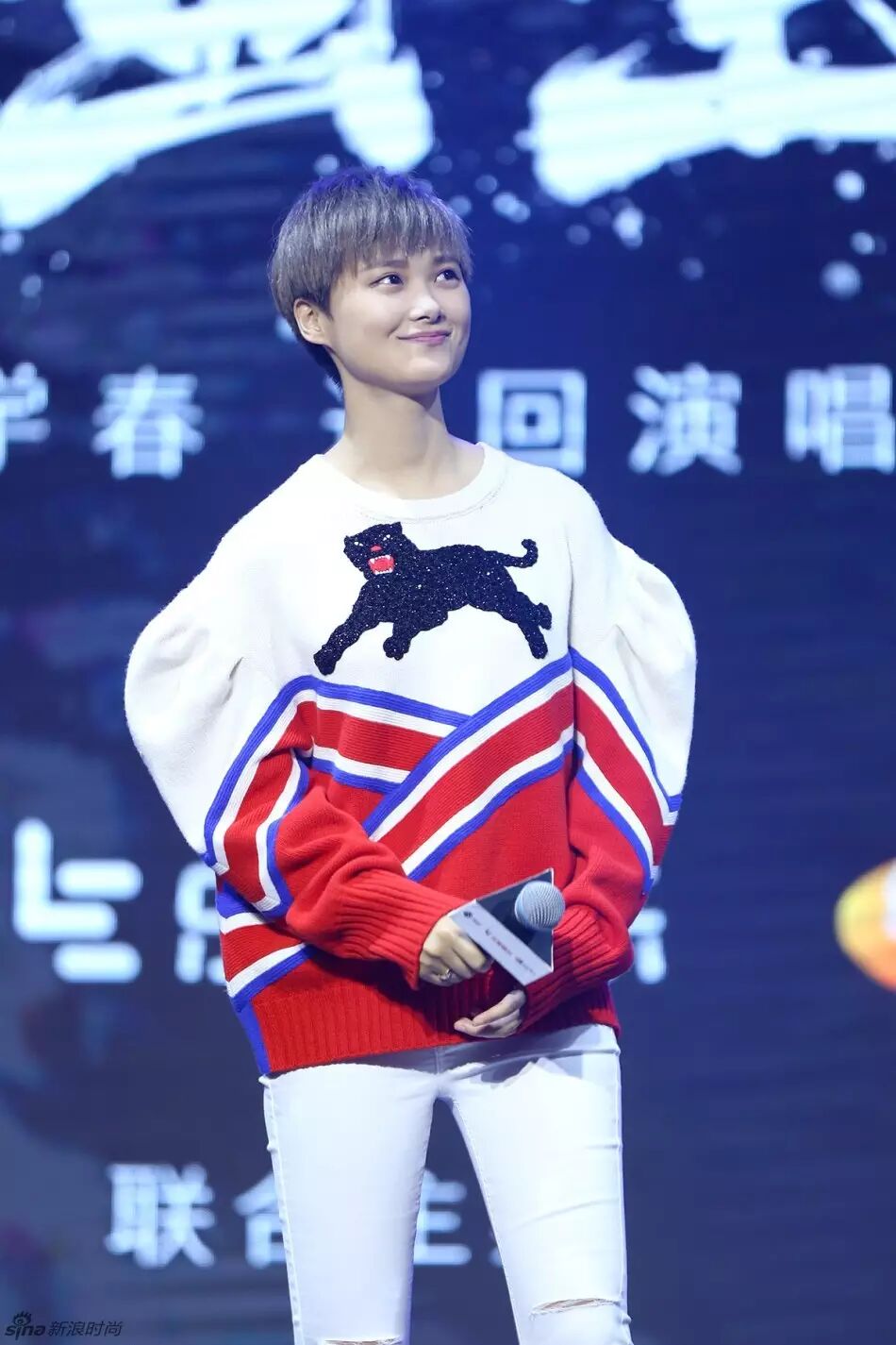 李宇春身穿一身Gucci动物纹印花的潮装亮相,2016“野蛮生长”巡回演唱会新闻发布会,俏皮可爱又不失王者的霸气。