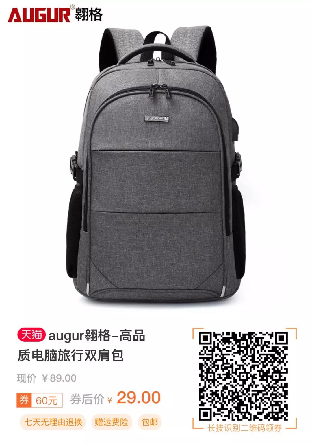 augur翱格旗舰店,月销1.1万件,4.8评分,时尚潮款,上班族学生适用,大容量防泼水,12-16寸笔记本都可装,牢固做工,减压背带,提着背着都不累,usb便捷充电,方便实用。