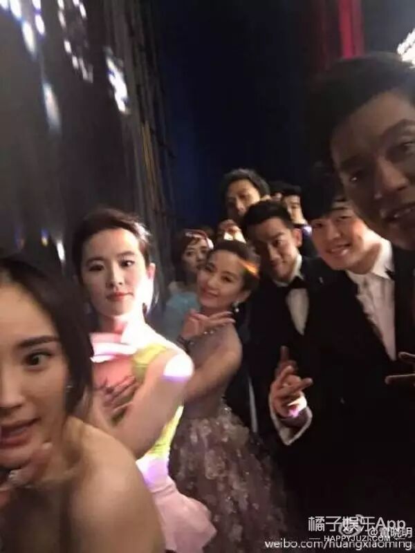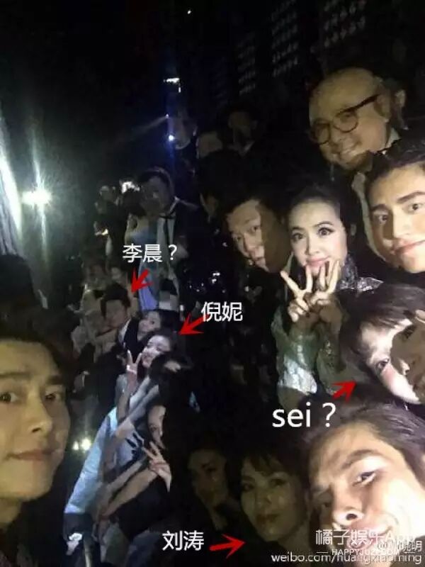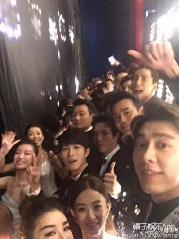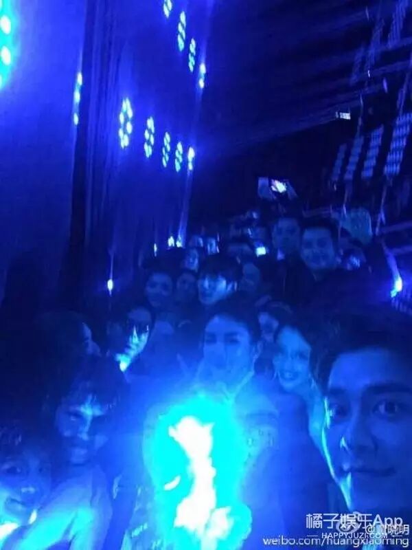 橘子君把图片一打开啊,吓了一跳!这...真是想不出形容词了,本应该是史上颜值最高、阵容最豪华的后台,结果,却变成史上最糊,最群魔乱舞的!