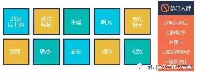 适用人群:眼部皱纹、额头皱纹、眉间皱纹、鱼尾纹、嘴角纹、手纹、面部肌肤下垂等。