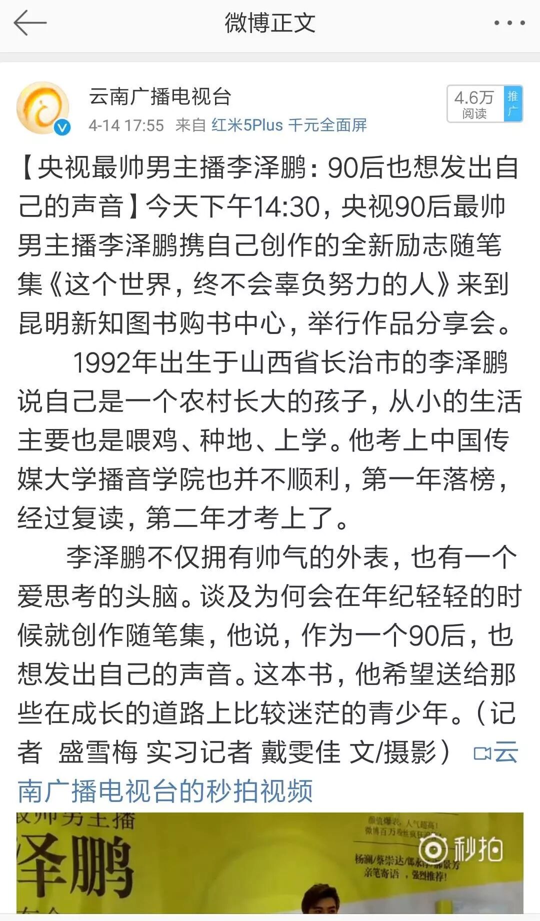 李泽鹏在新浪微博发起#和李泽鹏一起