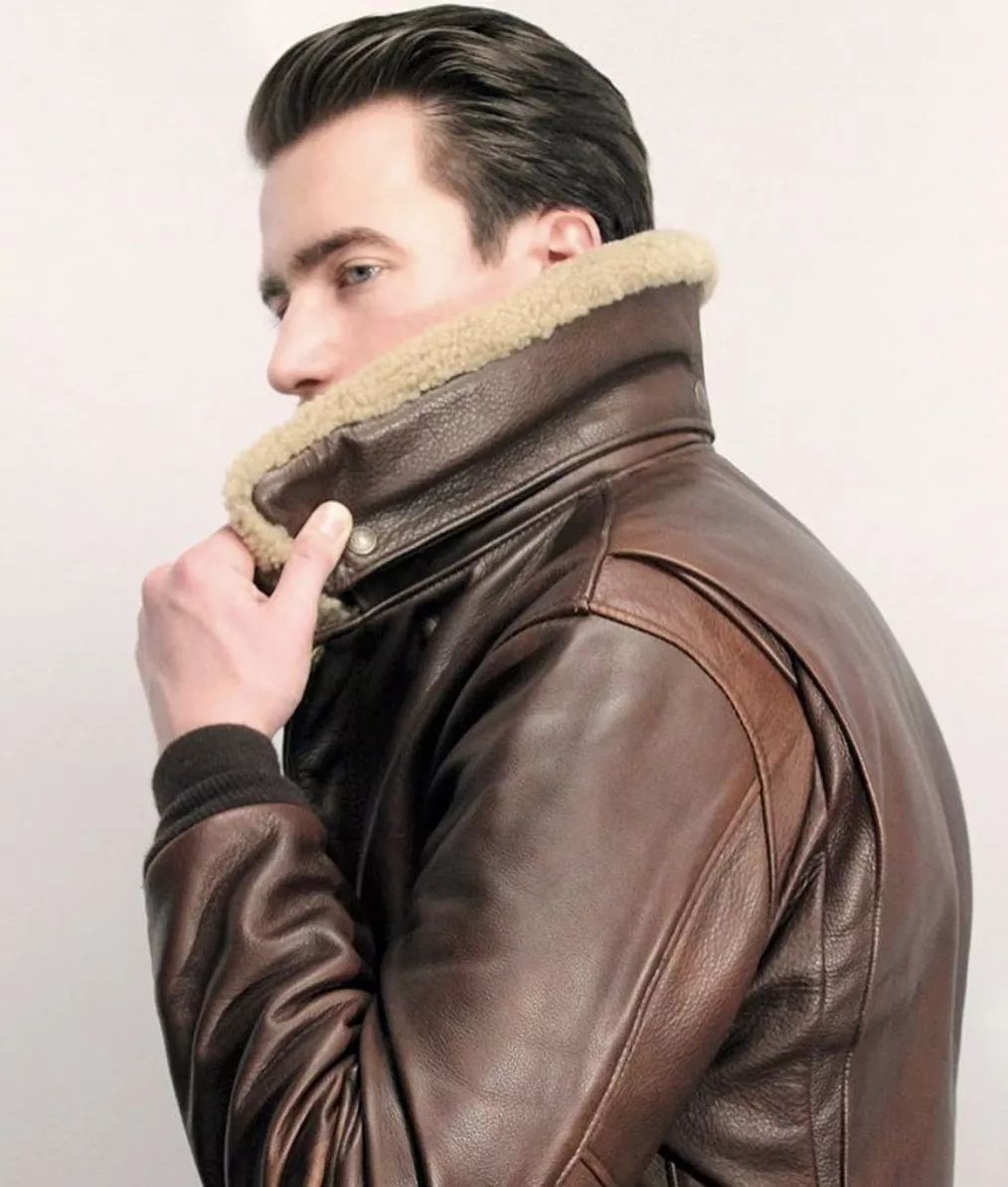 也有厚重山羊皮材质的MA1夹克,保暖性能更好。