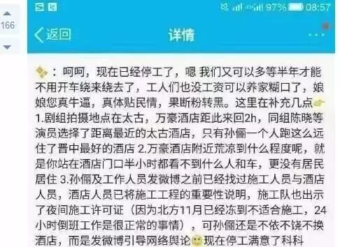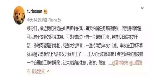 因为天气原因,山西过了11月地面就很难施工,所以工作人员不得不加班加点进行工程建设,这一点孙俪居住的酒店是提前告知了的。