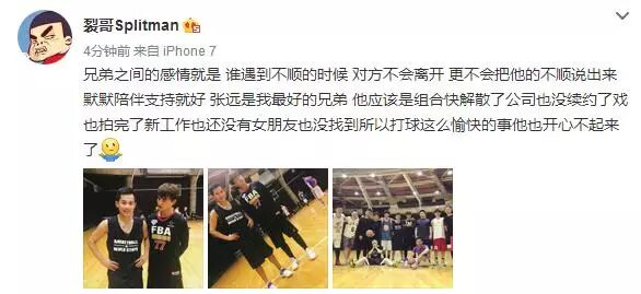 并配图为和至上励合张远的打篮球照片,不过照片中一点也看不出张远有丝毫受影响的样子,网友评论称:好兄弟的事情就这么说出来了真的好吗,这是帮忙还是帮倒忙!