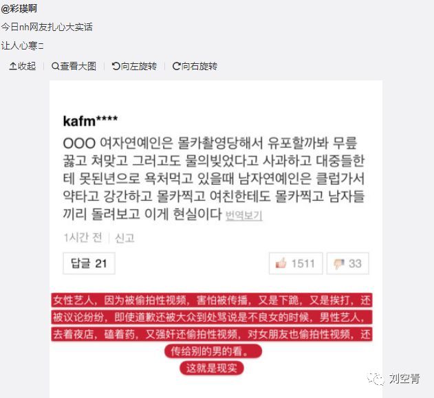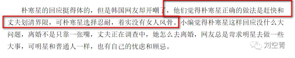 目前韩国网友都在嘲讽朴寒星,因为她在出事后选择了隐忍而非离婚。↓
