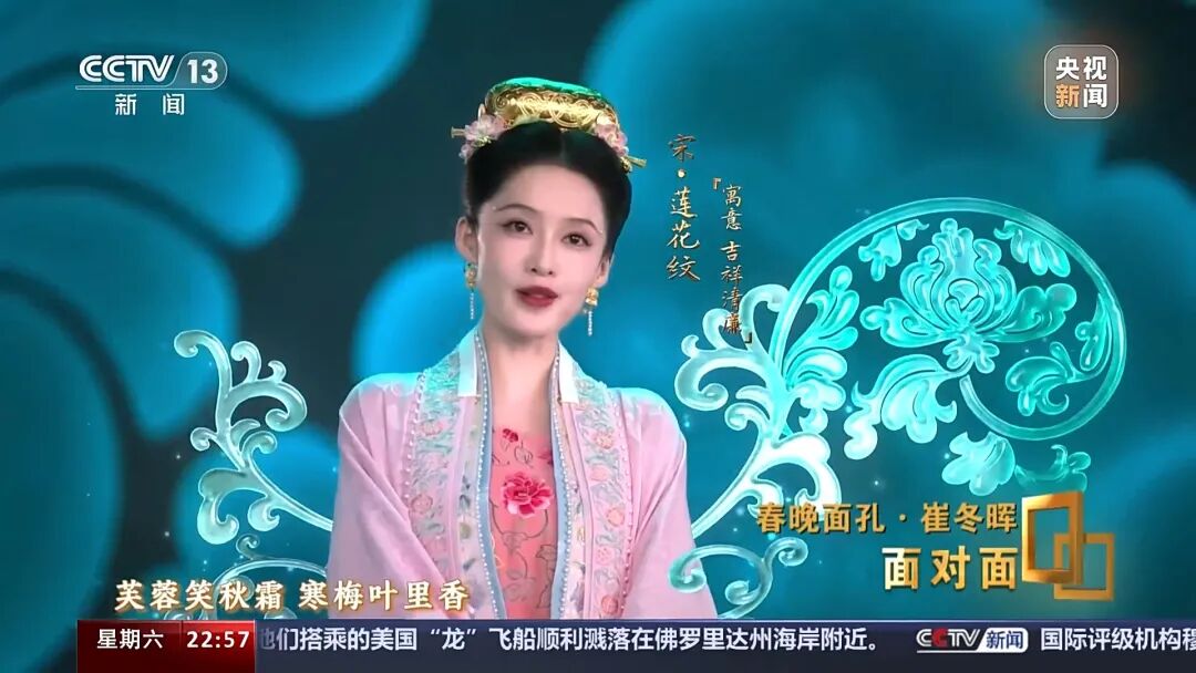 一幅幅寓意吉祥的中国古代纹样,通过演员们的现场表演+虚拟合成技术,呈现了一场“古代时装大秀”。