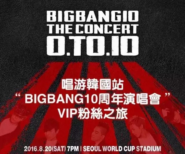 领航定制旅行正式发布四天三夜的《BIGBANG 10周年演唱会VIP粉丝团》