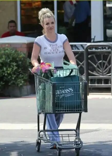 布兰妮发胖的原因很有可能是因为她平时不注重饮食,之前还曝光过一组她去超市购物的照片。布兰妮推着一大包战利品,丝毫没有考虑到这些食物对于她身材的影响。而她的穿搭也比较随性,白色的字母T恤略微修身,凸显曲线,配合上灰色的阔腿裤,很简单很日常,走在人群里都或许不会被发现。