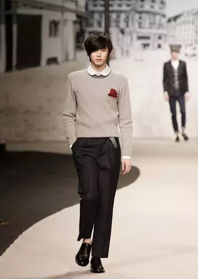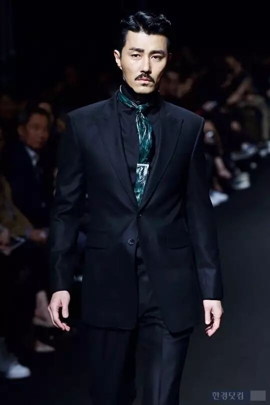 他在首尔时装周时为某设计师走秀,在依然耀眼,在秀场展现超强气场!