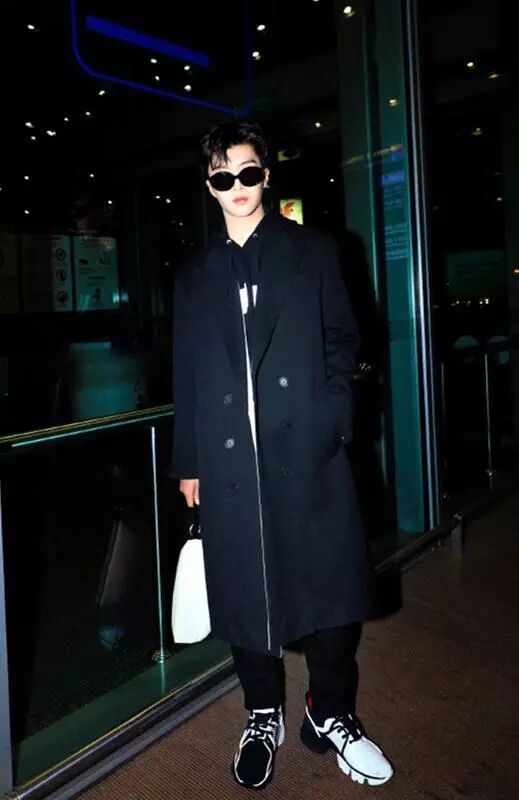 ▲而范丞丞从机场出发时则大胆启用了全黑造型,Givenchy白色反光条装饰黑色帽衫搭配黑色长款大衣酷炫帅气、黑色牛仔裤+黑白不对称拼色Jaw Sneaker运动鞋+白色Tag腰包街头感十足,俨然一位来自未来“黑客帝国”的超级战士。