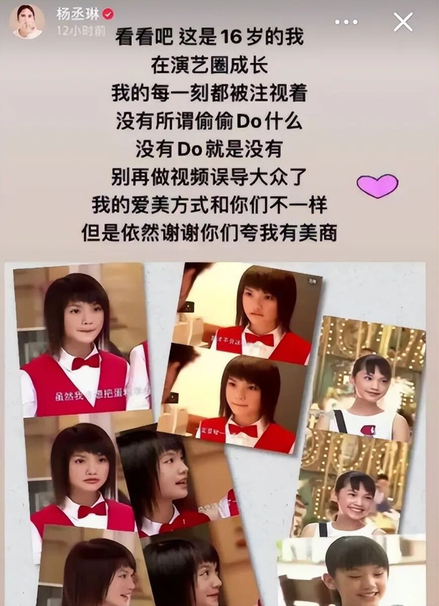 到了当天下午,杨丞琳又再次发文,称还是有人硬要说她整容了,那就欢迎以后用各个时期的照片做对比。看来,通过这次舆论可以看出她对于网络的评价还是很在意的,连续发多条动态辟谣。