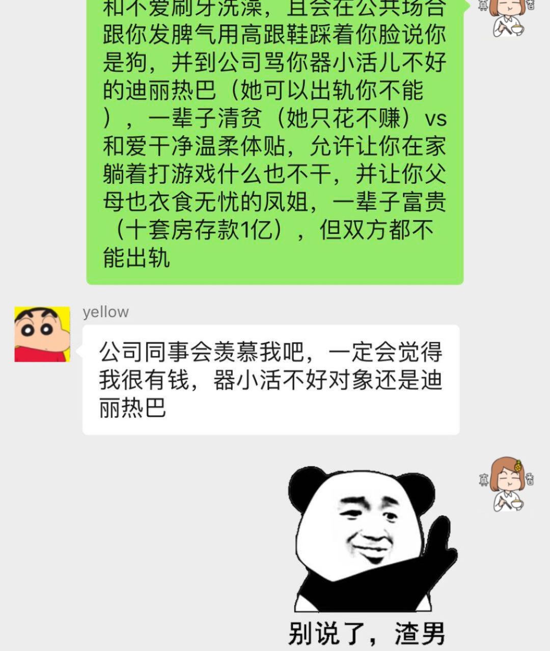 但选择漂亮脸蛋的男生,面对不讲卫生、出轨、乱花钱还要掏粪才能养得起的「漂亮迪丽热巴」,也会选择跳票。