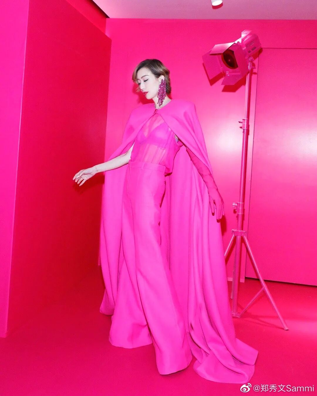 Sammi在Valentino活动上,是艳压全场的女神,亚洲明星们最排斥的“死亡芭比粉”,再一次被她穿出了天选时髦精的C位!