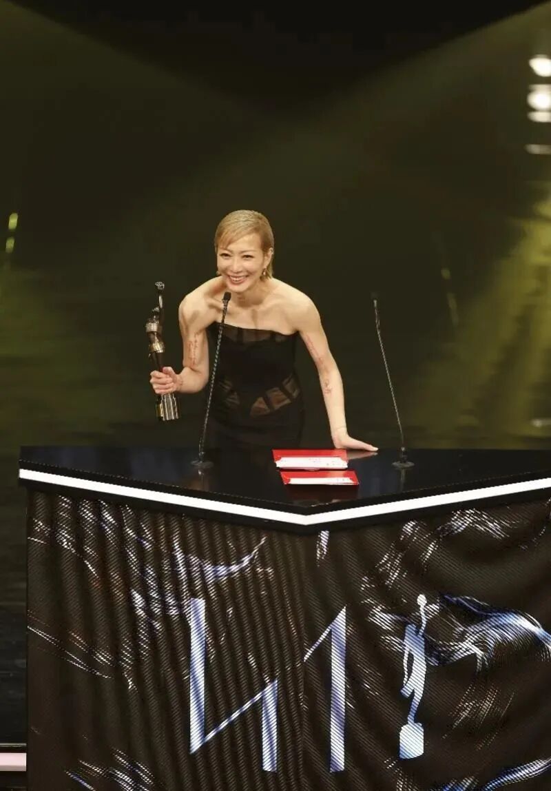 就如被提名10次,从影30年,陪跑20多年,51岁的郑秀文终于夺得最佳女主角,凭借《流水落花》金像奖封后!