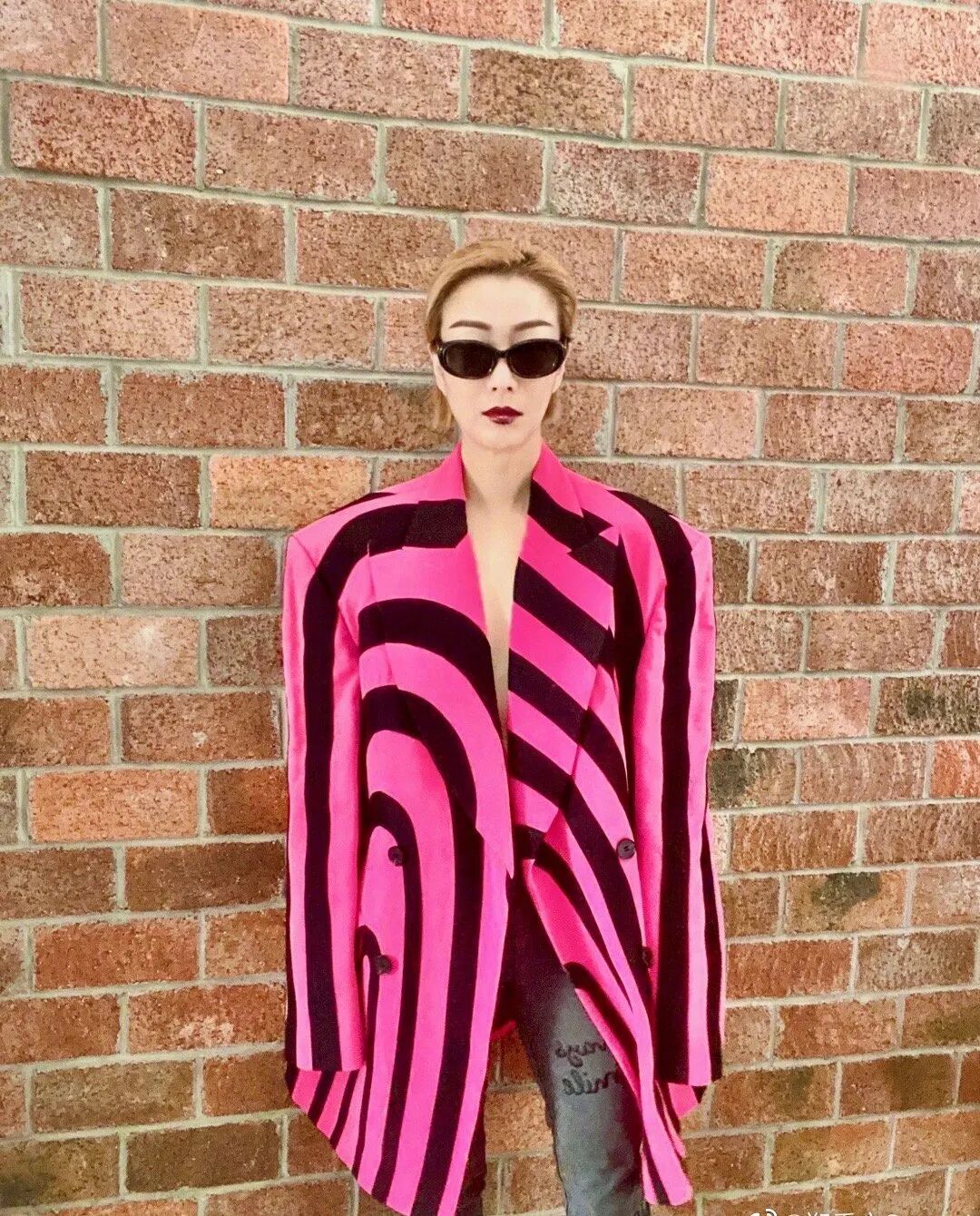 例如她最近分享的运动LOOK也是一套全亮粉的套装,整体个性又时髦,很难不爱她的前卫风格。