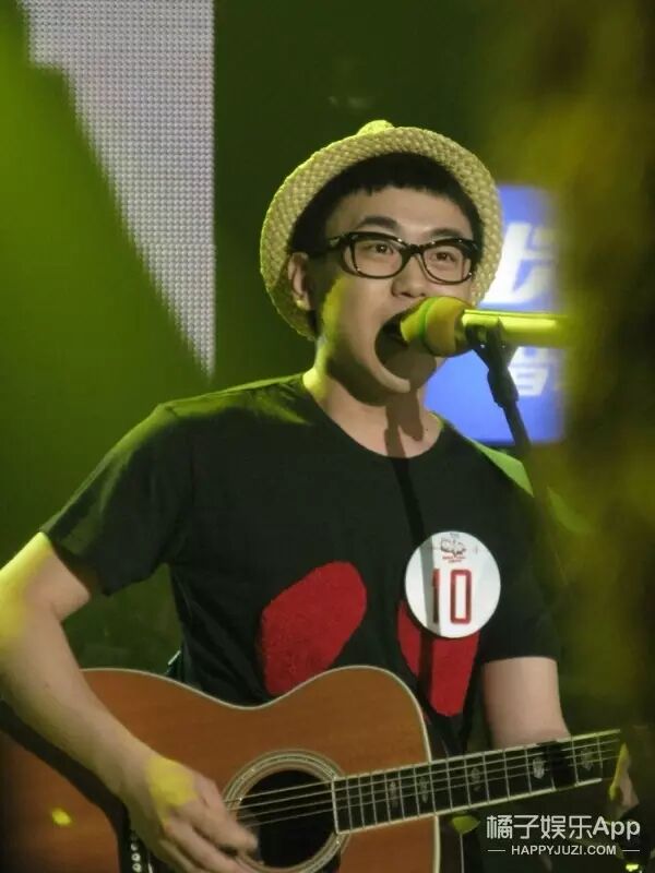 印象中,刘心参加比赛时总是会带着一顶帽子,抱着吉他,像这样: