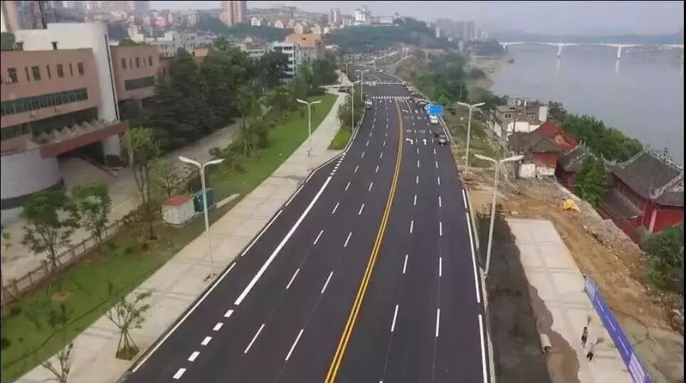 新道路扩建到老泸职院图书馆门口, 一路之隔,长江就在马路对面突显了出来。