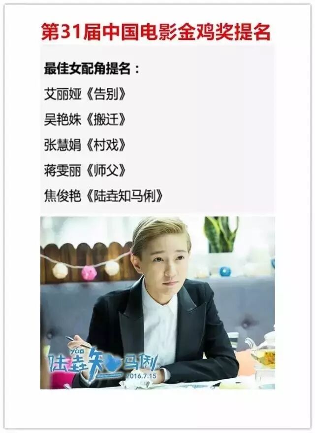 在《陆垚知马俐》中,饰演方灰灰的焦俊艳获得了最佳女配角的提名。