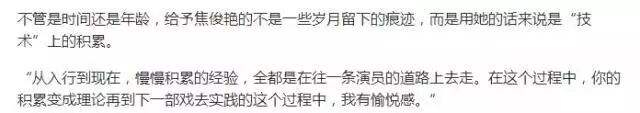 现在受到巨大关注的焦俊艳,仍然保持着一颗难能可贵的赤诚之心,正如她在接受采访时所说的,会一直慢慢的积累演技,然后再到下一部戏中实践,这个过程让她有愉悦感。