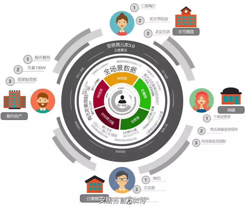 安居客3.0的发布也是这次发布会的重点,主要通过五维智能算法来发挥优势,五维算法包括:楼盘、内容、用户、经纪人、商户。在安居客全平台数据的基础上,进一步打通58同城、赶集网、中华英才网、58到家等58系平台的所有数据。通过“云库3.0”,可以综合分析用户行为路径,多维度了解用户需求,精细复刻用户画像,为供需双方提供更为精确的匹配。同时,连通58旗下多平台数据后,数据维度不再局限于找房领域,可以结合买车、旅游、求职、美食、婚庆、宠物、家政、娱乐、教育等多领域数据。