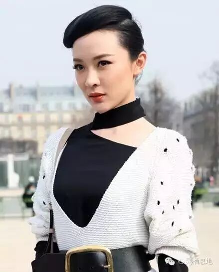 将刘海全部梳起,露出额头后将脸型拉长,并且拉长了身高。个性的盘发令整体造型干练简洁。