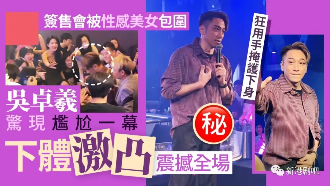 与粉丝打过招呼后,吴卓羲继续上台完成工作,但其穿着却引人侧目,吴卓羲穿上宽松黑色长裤,一隻手含蓄地摆在重要部位前,却可见其下体激凸,侧面睇也见吴卓羲下身也十分惹人注目,从其他片段也可见吴卓羲狂用手掩护下体。然而可能因为拍摄角度,加上穿上宽裤的问题,才出现如此尴尬一幕。