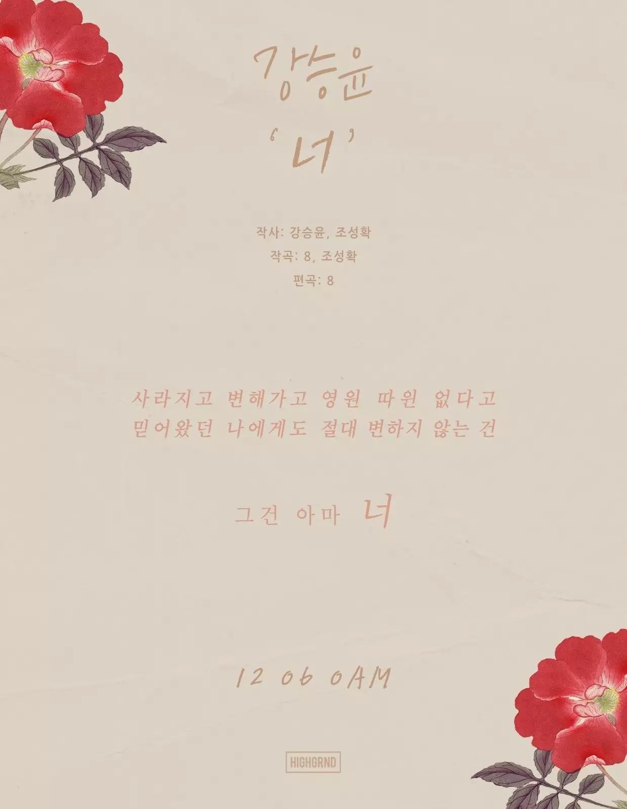 同时姜昇润用心亲自写下歌词的新歌《你》的歌词也公开了部分!