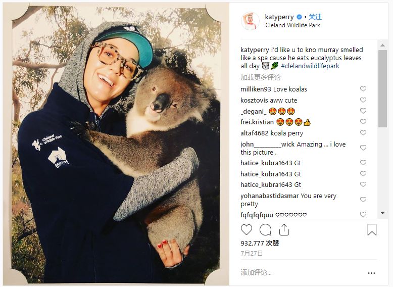 今年8月,Katy Perry在澳大利亚的阿德莱德开了Witness巡演演唱会,利落的短发,披上黄金甲,唱着那首拽拽的《Dark Horse》真的是喂饱了现场所有的粉丝。在演唱会开始前,Katy还打卡了阿德莱德山上的克莱兰德野生动物园,偶遇了一段“真爱”。