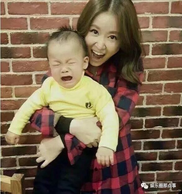照片小孩哭的哇哇叫,林心如还在做着鬼脸,貌似很开心的样子,一点也没有想到哄下小孩!