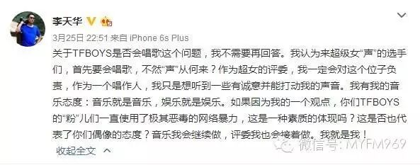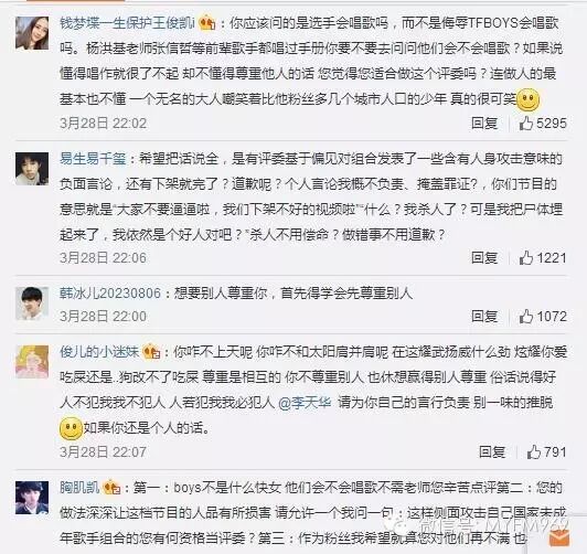 视频中,一位朋克范儿的妹子要唱自己改编TFBOYS的《青春修炼手册》,却遭到评委老师李天华不屑反问:“TFBOYS会唱歌吗?”并强调了好几遍。