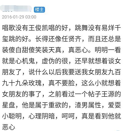 “王源那个唱的,初中合唱队都进不去。”