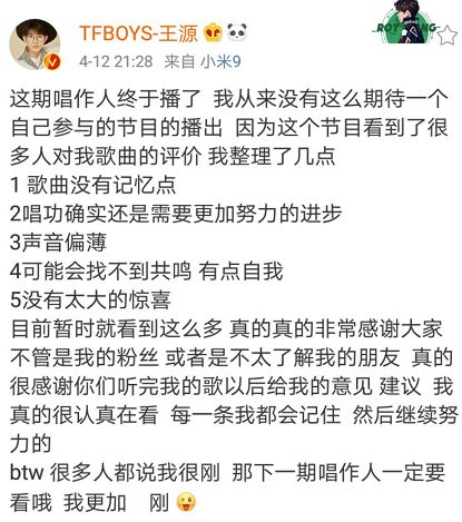 好在年轻人不怕输,首次PK失败后王源也发微博总结经验,大家的批评都看到了,会继续努力。