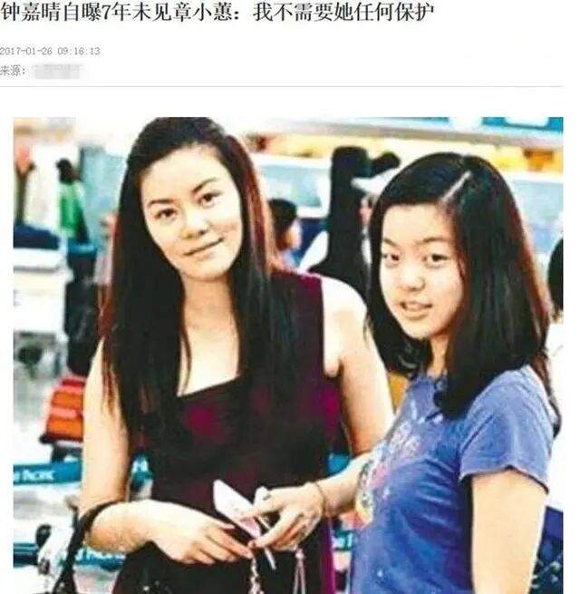然而,钟嘉晴跟亲生妈妈章小蕙感情似乎有点疏离,几年前她接受媒体采访时,更扬言不需要章小蕙保护。