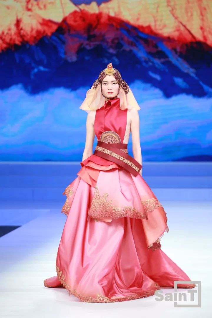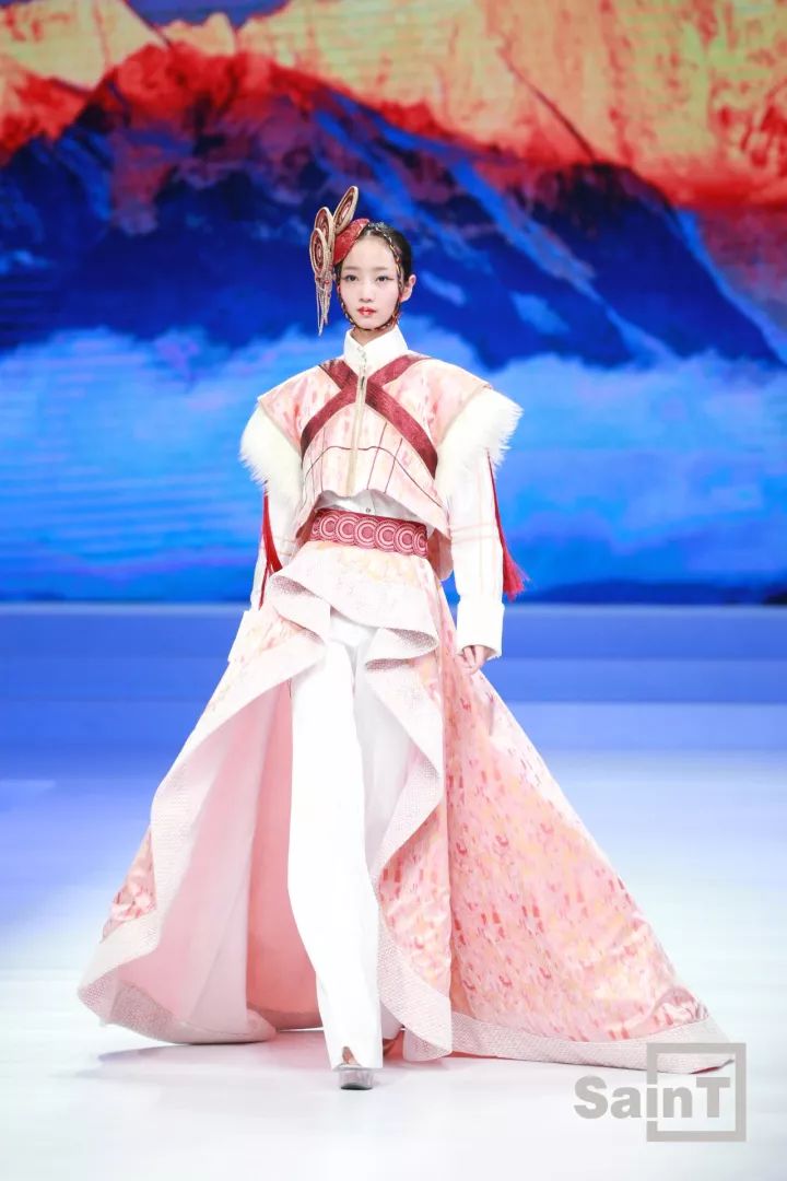 这一季的创作,从浪漫派哲学沉思出发,以香格里拉的雪山、草甸、河流、青稞、自由的呼吸、欢歌和信仰作为为此次设计的灵感来源,将高定精神隐藏于自然而和谐的色彩和严谨的形式背后,用面料和款式的抽象化去演绎充满活力的现代时装语言和洁净的民族文化内涵,用民族符号和元素的国际化去表达服装设计艺术创造的无限可能和对香格里拉的美好记忆。