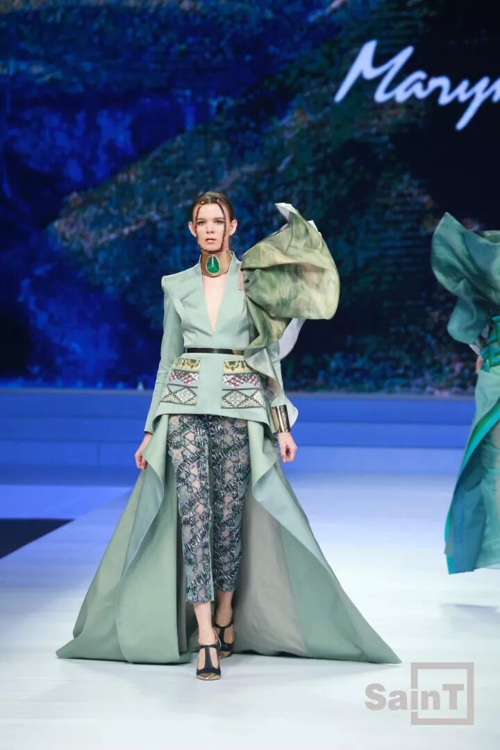 缱绻的写意泼墨,恢弘的云龙图腾,精致的织锦刺绣工艺……国际时装秀中越来越多的东方色彩,中国风高定也结合着民族元素展现出新的形式、新的变化。此次创作历时一年,马艳丽四访云南迪庆州,足迹遍寻大香格里拉,领略了梅里雪山、巴拉格宗、普达措、虎跳峡、古城独克宗等自然人文风光,与藏族、傈僳族、纳西族、彝族、普米族等不同民族共同生活,现场明星直言“被民族文化的美震撼至深”。