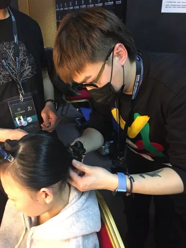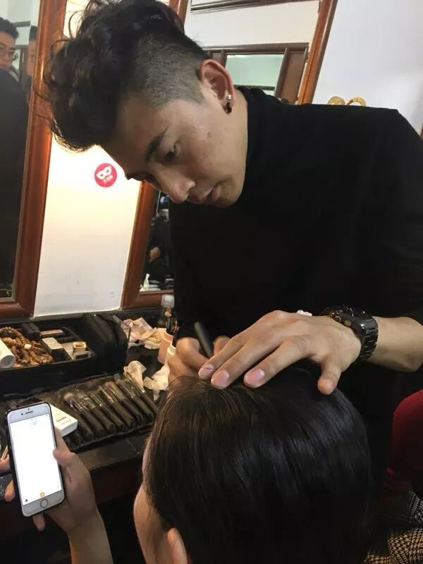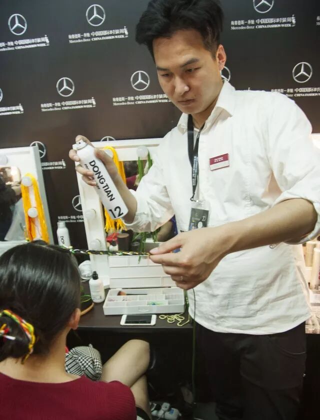 造型品则选用东田专业发品东田专业发品12强力舞动定型发胶和16号光顺透明发蜡,先用16号打造造型再用12号定型。