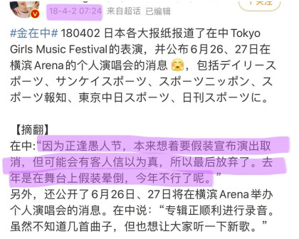 因为这过头的玩笑,金在中这几天在日本的行程也都取消了,录好的节目改了内容,1号晚上的直播,5号的节目都被取消了,这一次,他是真的惹怒了日本央台。