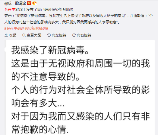 昨天下午,忽然收到推送,金在中确诊了新冠肺炎。