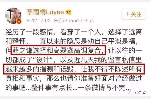 图注:知情人士透露李雨桐曾包养薛之谦多年。事实真相我们不得而知,但一个带有主观色彩的判断注定不会是真相。
