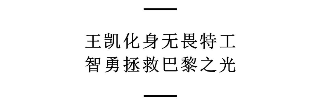 正如王凯所说:“从出道到现在,其实每一个角色都是对我前行的勉励,勇气、赤诚、真实,这些都是角色给予我最深刻的启示。”这一次,特工王凯用一往无前的勇气和干净利落的身手,夺回璀璨的巴黎之光,守护了这座城市的灵魂。而演员王凯,也从中理解了“无畏”的深意。