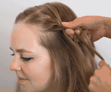 第一步,留出一小撮头发,将它交叉编成麻花。