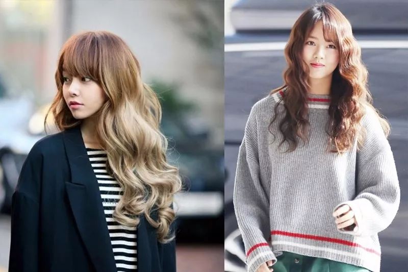 美姐放一组韩国某明星的直发与卷发对比照,同样是长发+刘海,蛋糕卷的少女感不要太轻松,隔着照片甜美范都快要溢出来了,元气满满有木有?