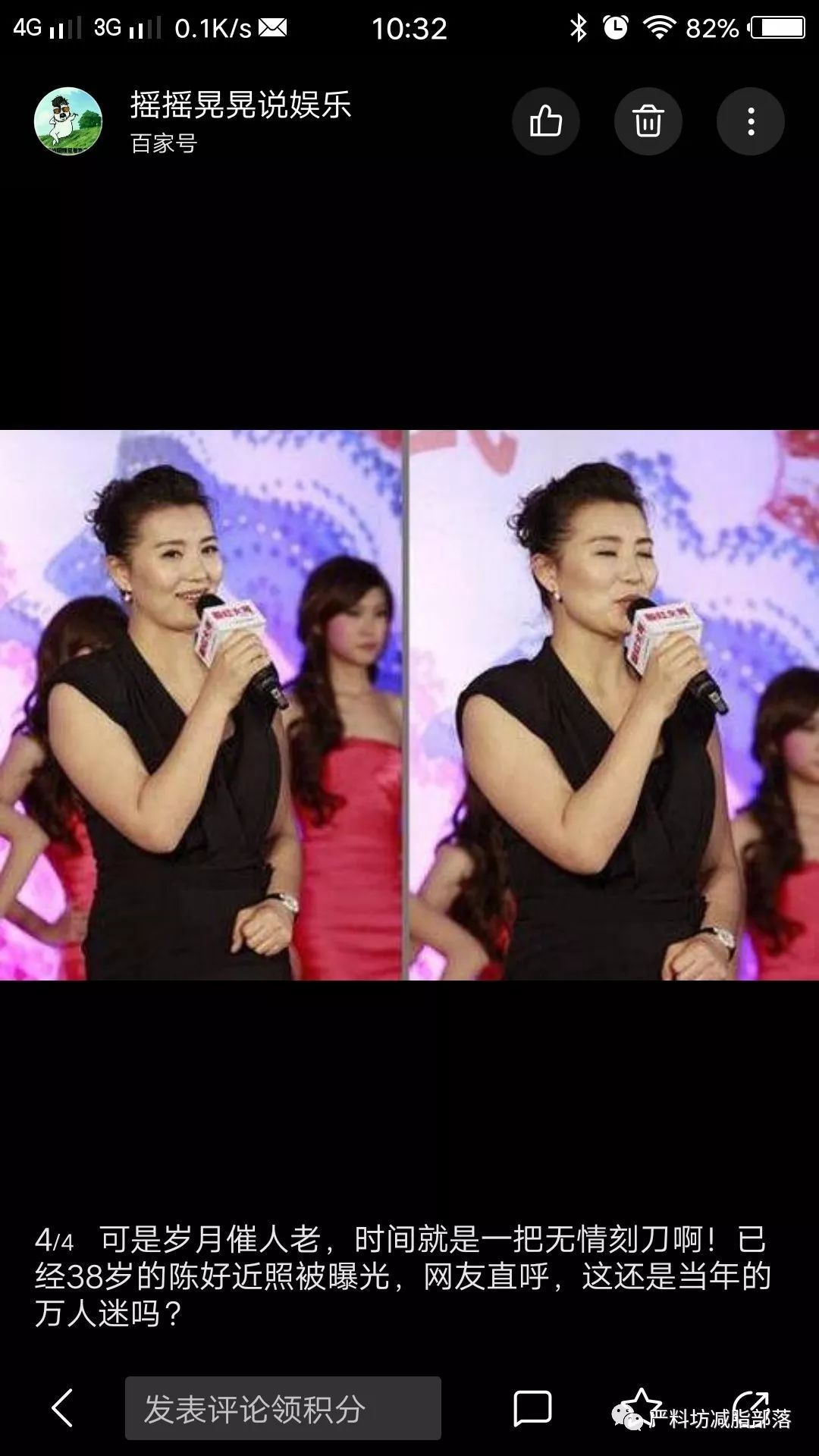 最后我简直想臭骂这个不知哪里来的百家号,吃饱没事干在那里瞎扯误导人!没错!陈好的确胖过而且胖得的确让人大跌眼镜过: