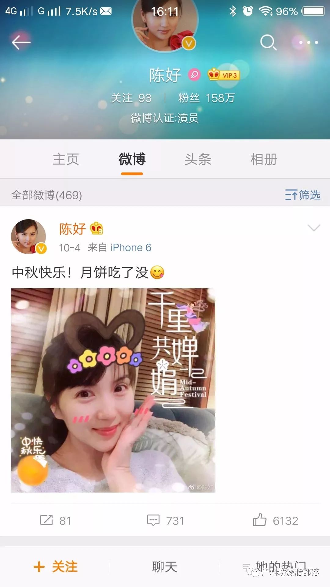 今年中秋陈好最新的微博自拍Show!
