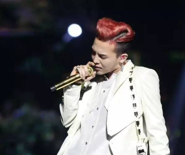 这款西装头梳得很有意思,用发蜡打造出光亮的发质,红色的头发打造出了一个看似心脏的外形,GD真的是一个造型艺术的天才呀。