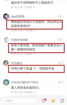 不料却有不少网友这样评价,“穷得只剩下钱了!”“富人养得金丝雀而已”,这明显是发酸嘛