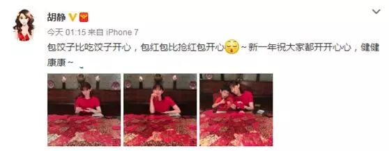 胡静还说:“包饺子比吃饺子开心,包红包比抢红包开心。新的一年祝大家开开心心,健健康康。”