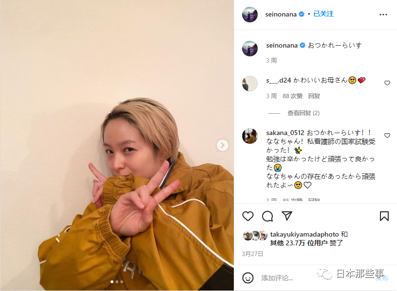 他们在上个月也升级当爸爸妈妈了。产后清野菜名晒出了自己的金色短发造型,名副其实的酷妈。