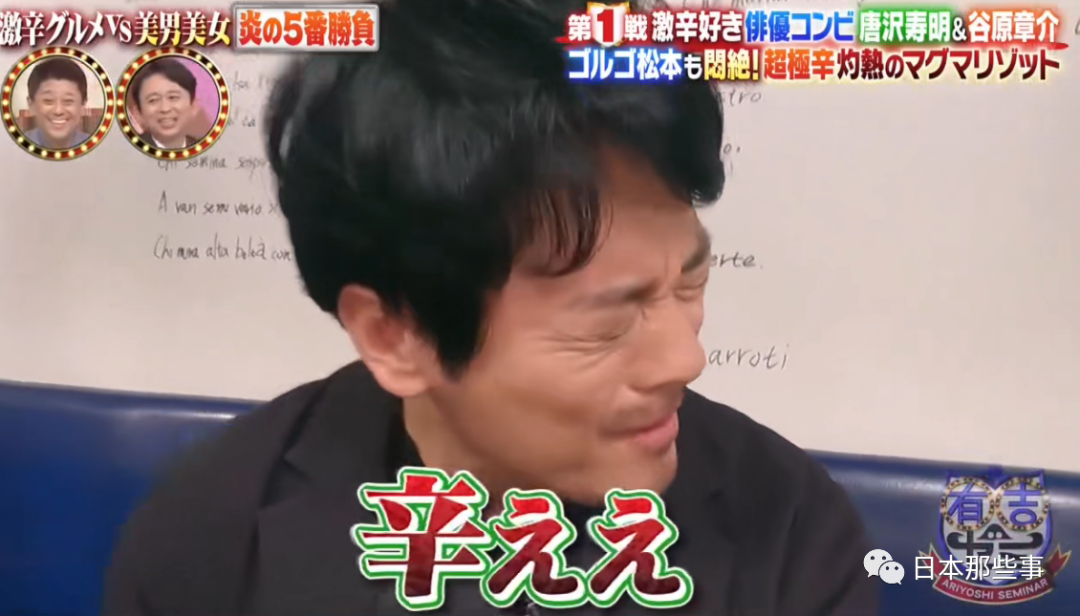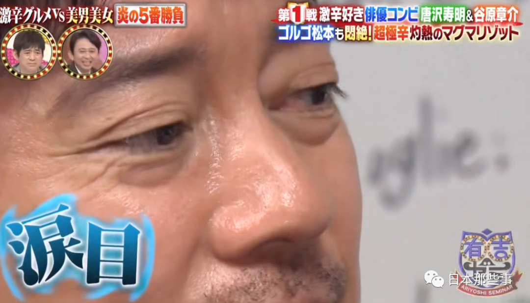 去年12月唐泽叔在参加《有吉讨论会》“冬季辣味挑战赛”时,挑战了超辣岩浆烩饭。他表示自己流着泪也要吃下去,因为妻子在他出门前对他说了要加油,不想回去被妻子嘲笑。